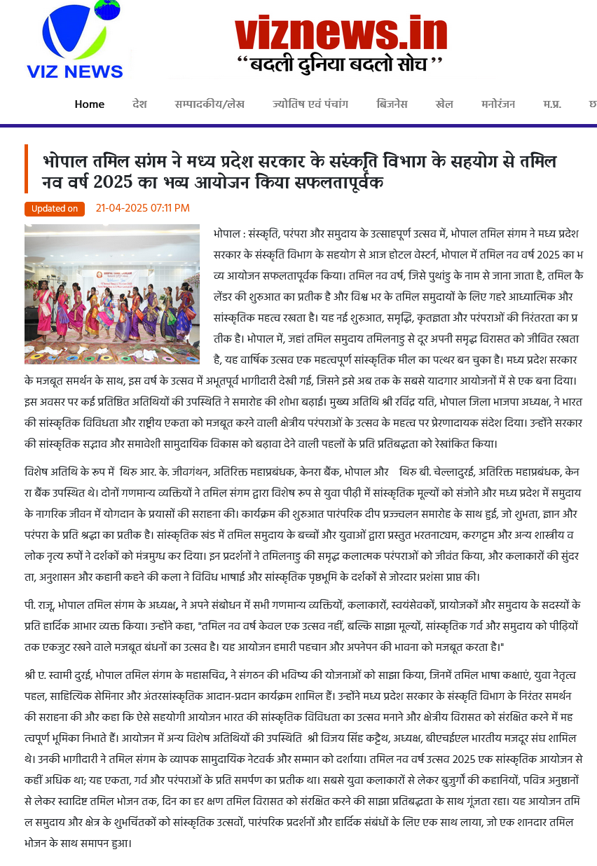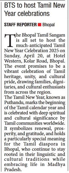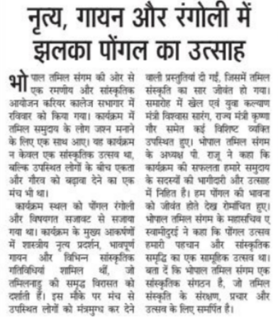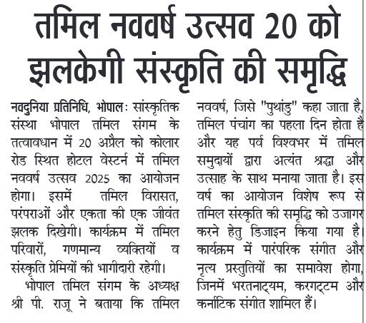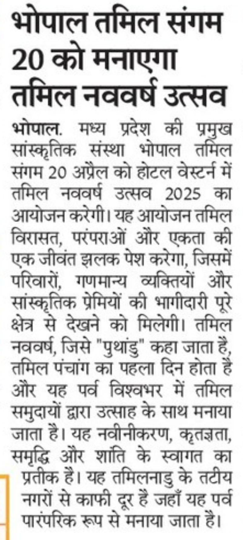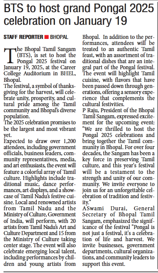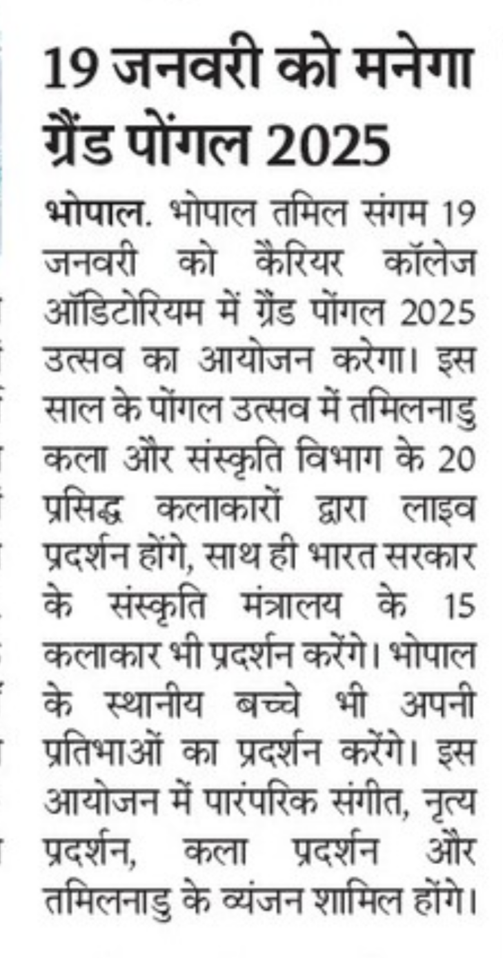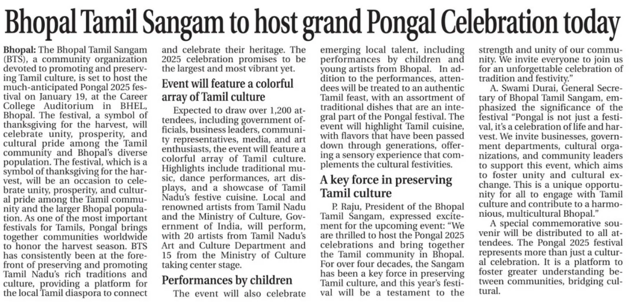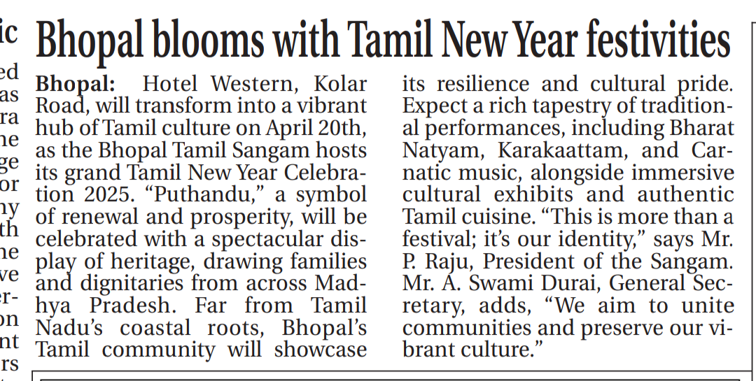 Fostering cultural integration by celebrating Tamil festivals and traditions, ensuring that Tamil families are an integral part of Bhopal’s diverse cultural landscape.