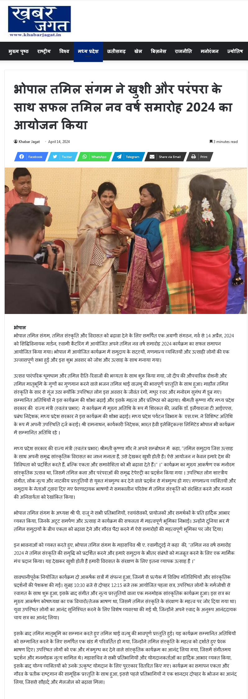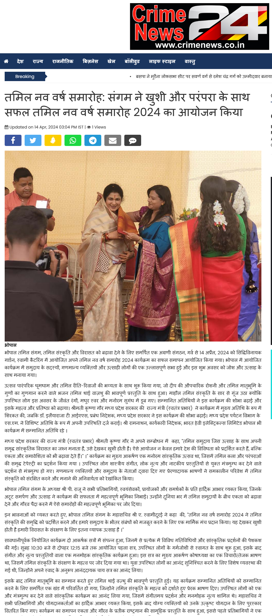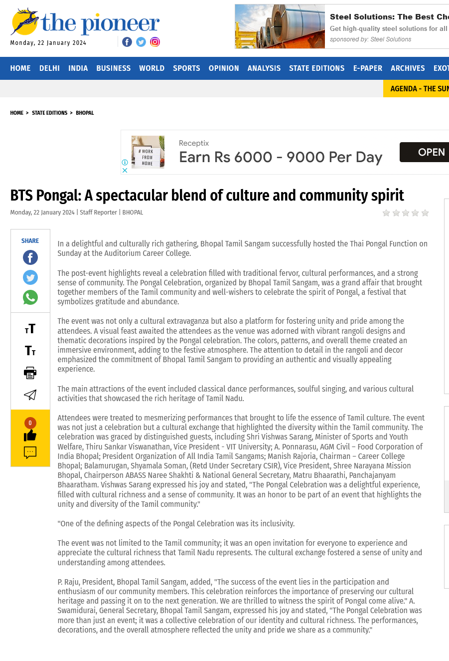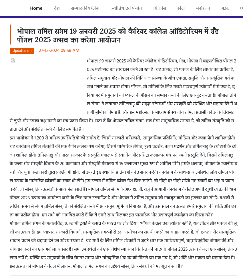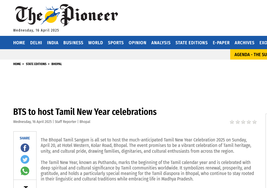Fostering cultural integration by celebrating Tamil festivals and traditions, ensuring that Tamil families are an integral part of Bhopal’s diverse cultural landscape.
