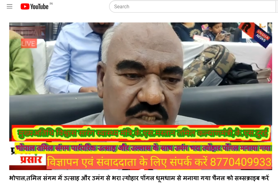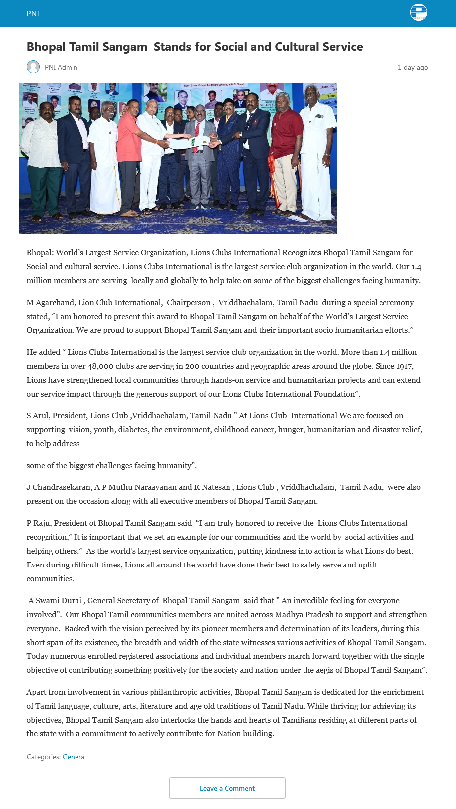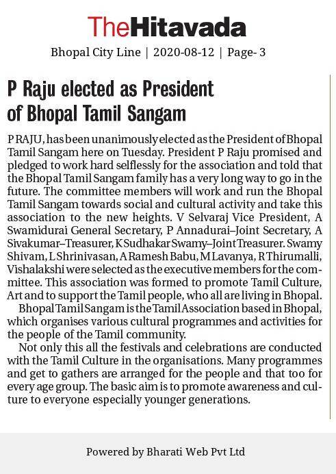 போபால் தமிழ்ச் சங்கம் செயற்குழு - ஆ. சாமிதுரை – பொதுச் செயலாளர் - 9303104208