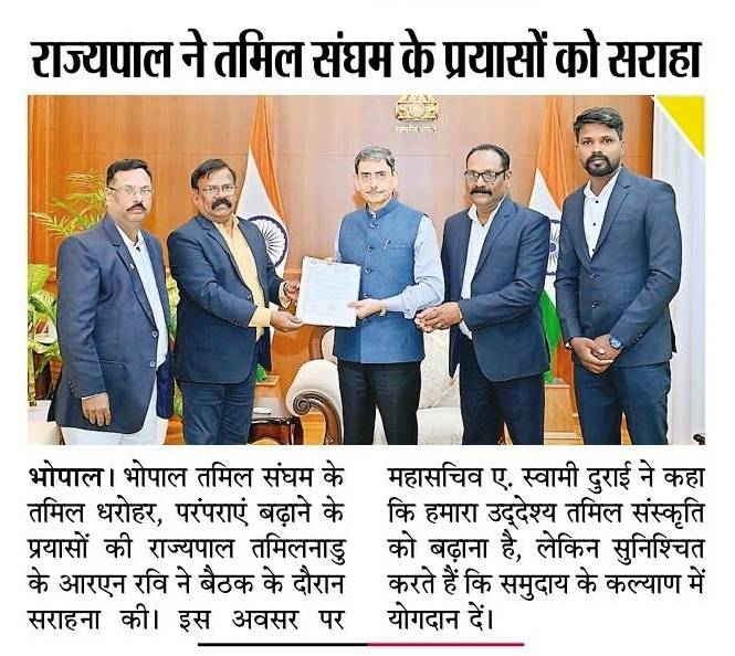 தமிழக அரசு உலகத் தமிழ்ச் சங்கத்தில்லும் மற்றும் அனைத்திந்திய தமிழ்ச் சங்கங்களின் பேரவையிலும் போபால் தமிழ்ச் சங்கம் பதிவு செய்யப்பட்டுள்ளது என்பதை நெகிழ்வோடு தெரிவிக்க விரும்புகிறோம். பதிவு செய்யப்பெற்ற இந்த அமைப்பு சாதி மதம் மற்றும் அரசியல் கட்சி மாறுபாடுகளுக்கப்பால் இயங்கிக்கொண்டு வருவதாகும்.